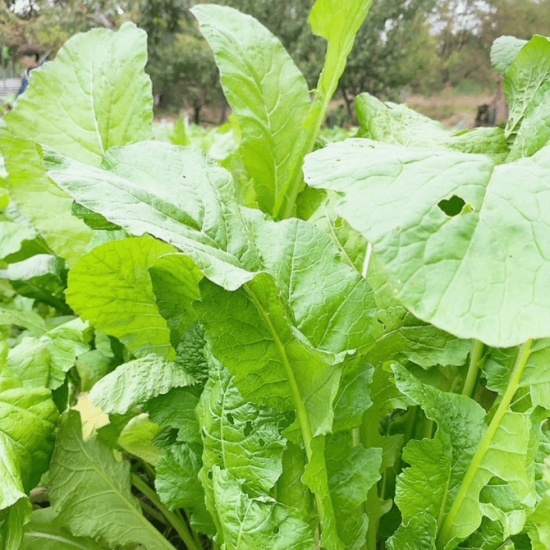 ほり川のおばあちゃんが、夏の終わりに種をまき、11月に収穫した野沢菜。